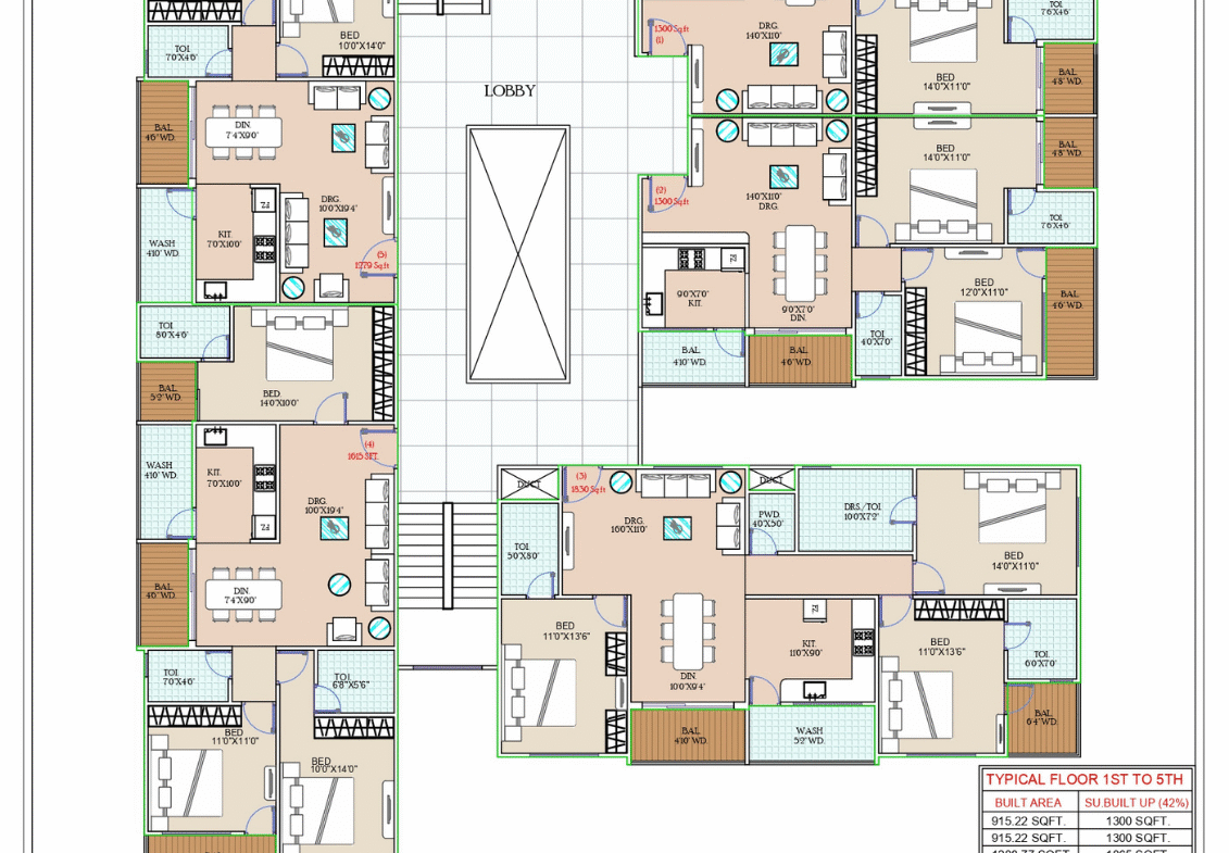 Built as a P+6 structure, Tattvam Heights offers only five flats per floor, ensuring enhanced privacy, better ventilation, and a peaceful living environment. Apartment sizes range from 1279 sq. ft. to 1865 sq. ft., providing ample space for comfortable living. The project also includes exclusive penthouses that elevate the overall lifestyle experience. With contemporary architecture, quality construction, and efficient layouts, every home is designed to maximize natural light and space utilization.